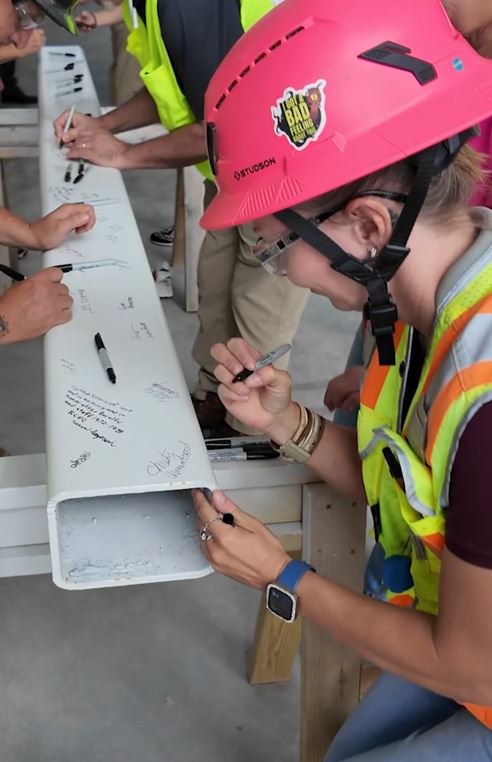 Roanoke County Public Schools celebrated a construction milestone for the upcoming Roanoke County Career and Technology Center (RCCTC), with a ceremonial beam signing and the launch of a financial endowment to support student success.