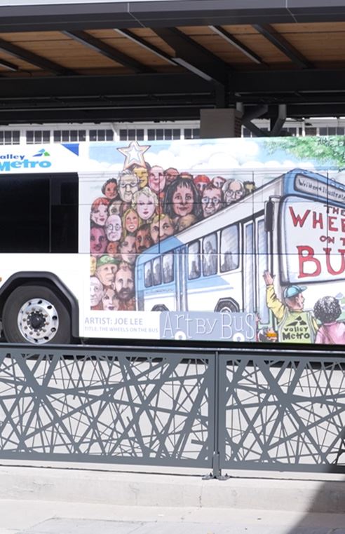 Get a first look at this year's Art By Bus campaign from Valley Metro, Art in Roanoke, RIDE Solution and the Bus Riders of Roanoke Advocacy Group (BRAG). 🚍 This year's bus features artwork by Joe Lee, along with a comic book that takes the reader on a ride through Roanoke Valley neighborhoods, local landmarks and history, with the important message that all are welcome on the bus. #ArtByBus #WeekWithoutDriving